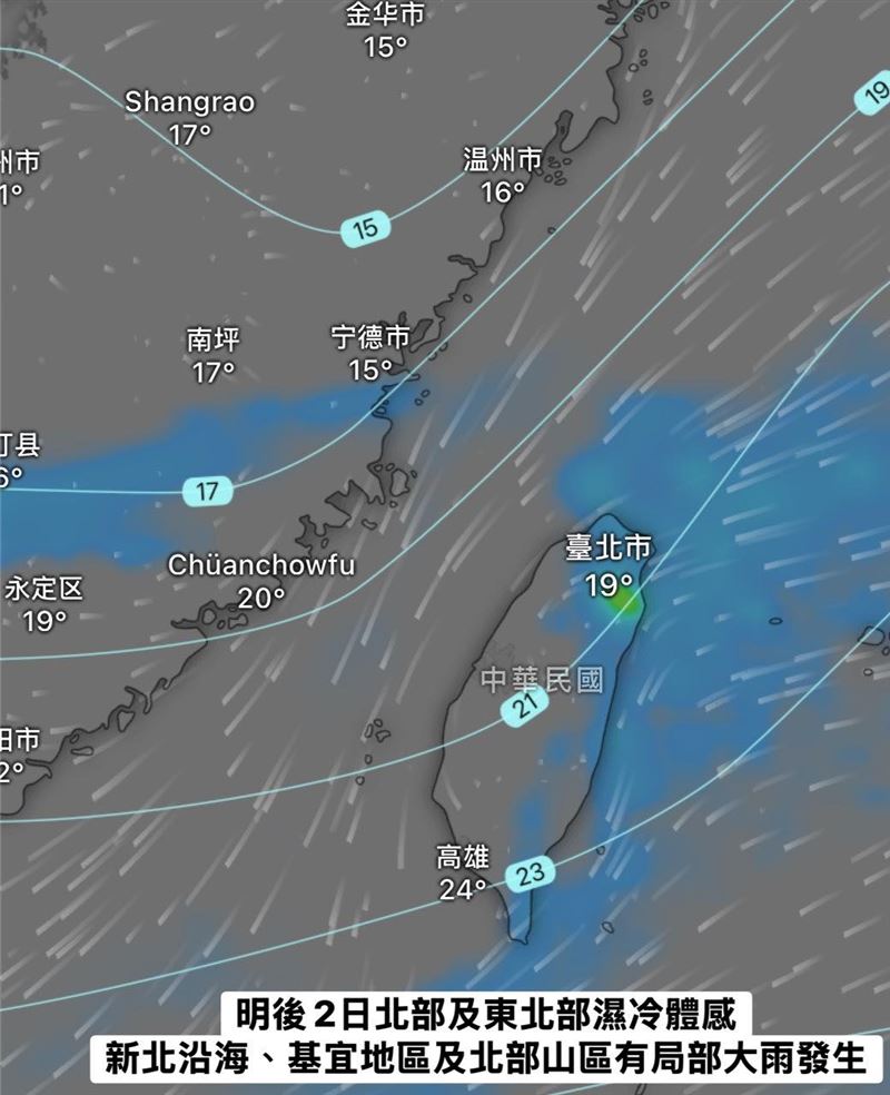 「氣象報馬仔」指出,11日晚間起,東北季風將再度增強,預計新北、基隆北海岸及宜蘭地區將率先轉為有雨的天氣。未來兩天,水氣明顯增加,降雨範圍也將進一步擴大,桃園以北地區將會持續維持濕涼和降雨的天氣型態。此外,由於地形抬升的影響,新北沿海、基宜地區及北部山區可能會出現局部大雨,造成濕冷的體感。