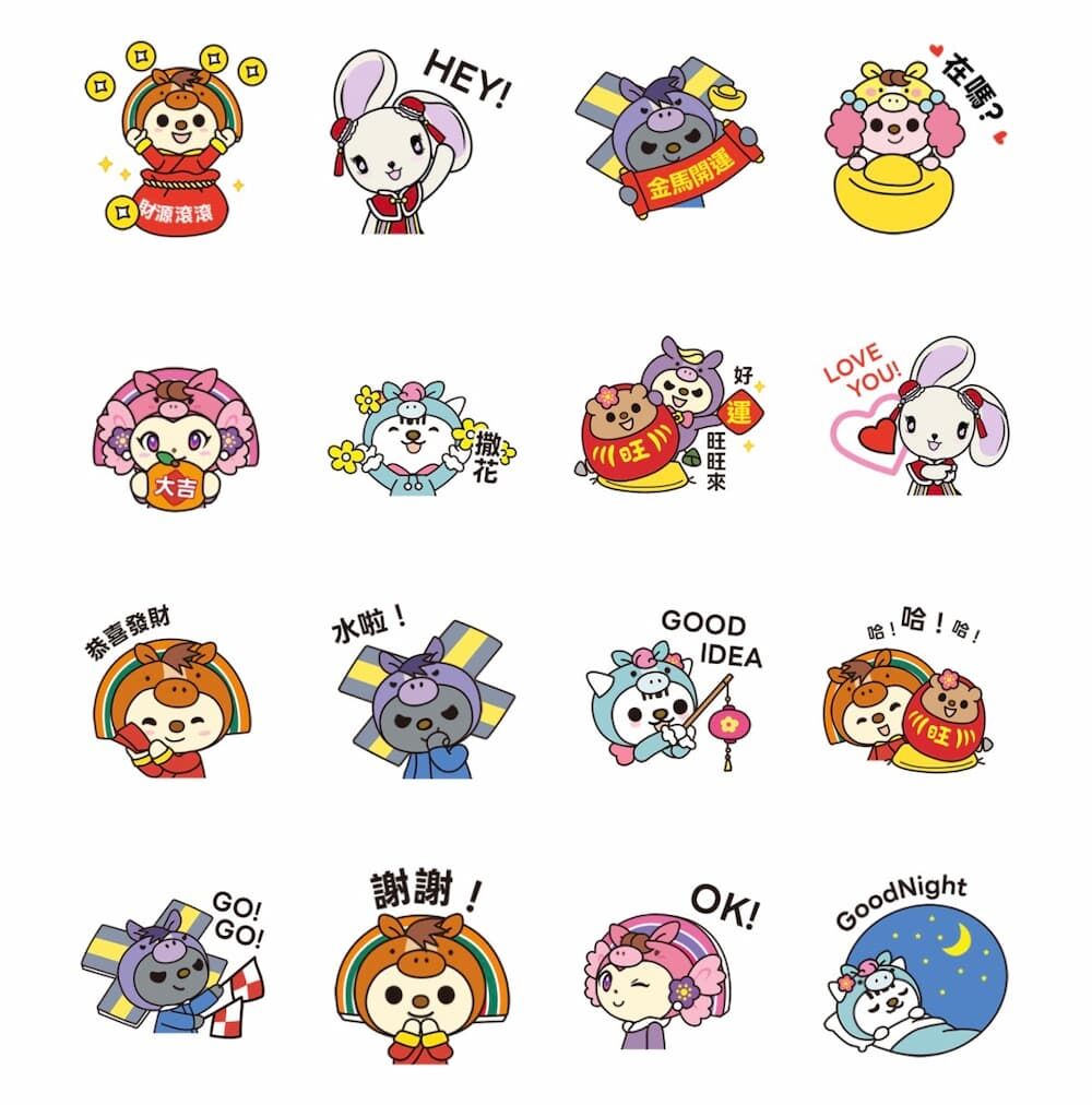品牌合作貼圖中,銀行類貼圖使用期限特別慷慨。北富銀與可愛角色「ㄅㄅㄐ」合作的「給你好運plus迎新年」貼圖,只要綁定個人化服務即可獲得,使用期限長達180天。同樣提供半年使用期的還有LINE BANK推出的「胸毛公寓的猴子朋友」限定招財加持版,以及第一銀行的「神馬都順!小粉獅給你滿滿好運」等貼圖。