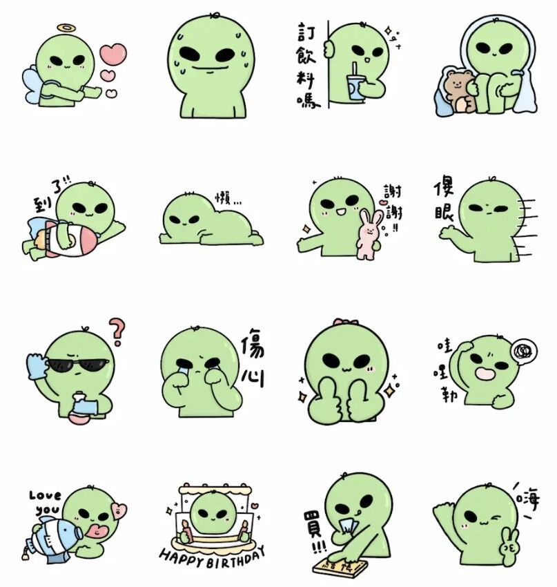 部分貼圖需達成特定任務才能獲得。LINE TV的「肥兔寶」貼圖需達成指定條件;LINE購物與「51的emo外星人」合作的貼圖,則需完成LINE購物App「搖一搖」任務,並將LINE購物直播的官方帳號加入好友才能下載。