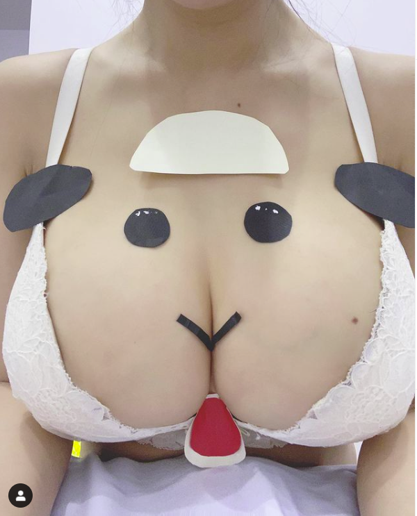 安希穿著皮卡丘的睡衣,豐滿上圍雄偉到把釦子直接撐開,讓渾圓雙球和深邃事業線一覽無遺,另外,她也穿上蠟筆小新的睡衣,釦子同樣釦不住,讓雪白春光整片被看光。