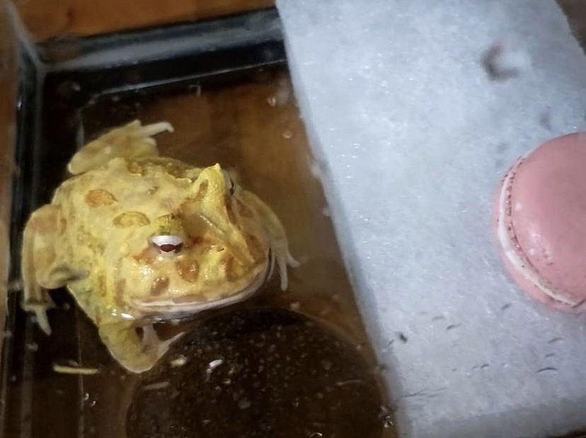 如今也養了小瓜瓜四年,即便是套圈圈套到的,我們家都會好好的照顧牠,陪伴牠成長,也希望牠能一直保持健康,過得無憂無慮的蛙生活!來跟各位分享下角蛙的小知識,角蛙是全世界最常見也最好上手的基本款寵物蛙,食量不大但不會控制食慾,給牠們多少就會吃多少,所以在飼養也需要特別注意別讓牠撐死!
