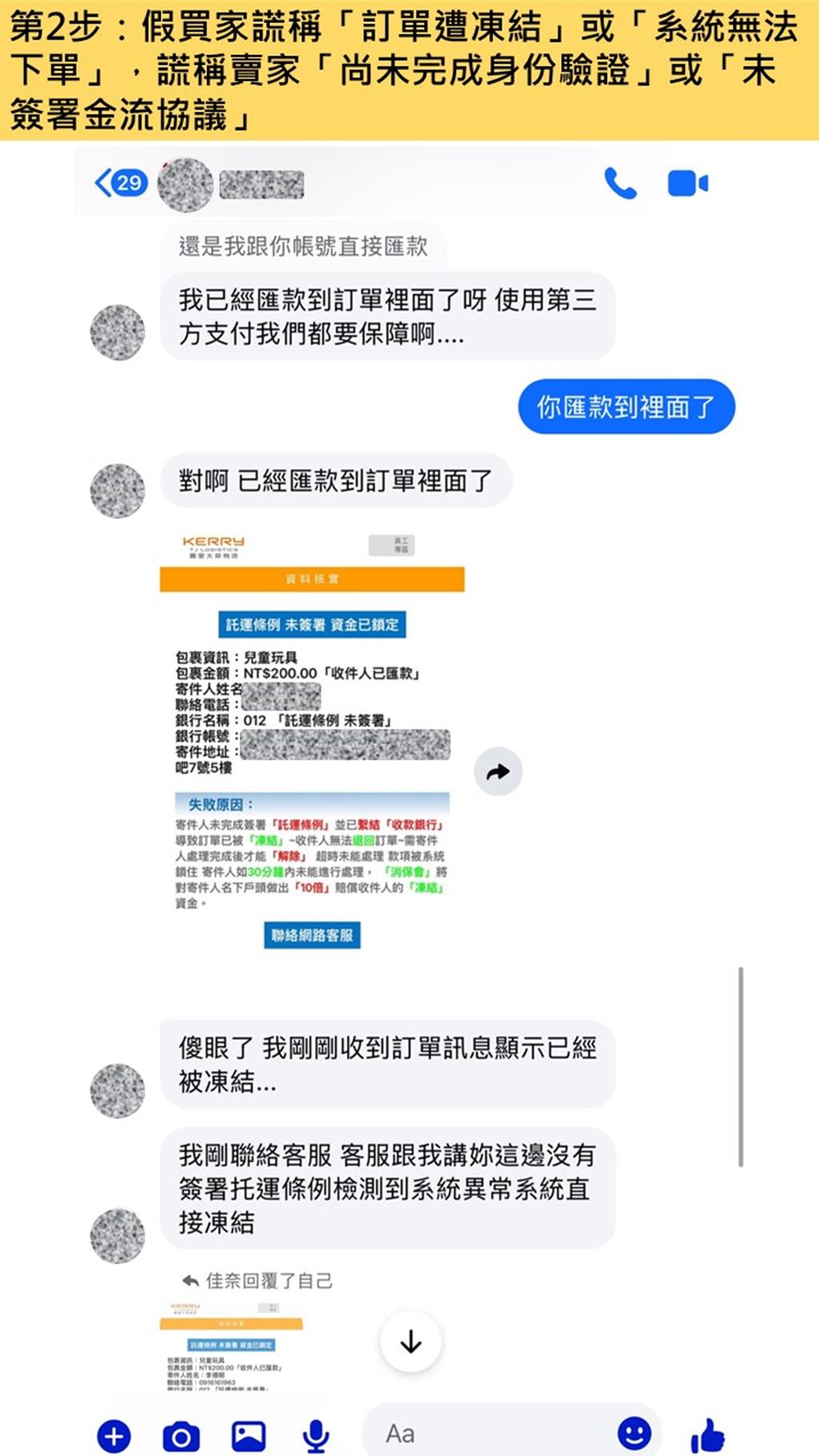 當賣家提供商品連結後,詐騙劇本隨即展開。假買家會謊稱「訂單遭凍結」或「系統無法下單」,接著傳送一個假冒的客服連結。這些高度仿真的假網頁會誘導賣家與假客服聯繫,假客服則會謊稱賣家「尚未完成身份驗證」或「未簽署金流協議」,必須立即處理。