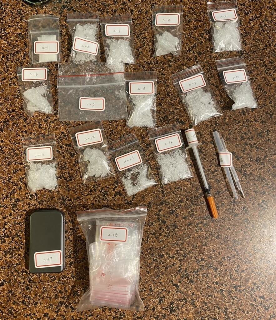 連江地檢署表示,此次於連江縣查獲海洛因2.4公克、安非他命49.7公克,以及針筒、玻璃球吸食器、電子磅秤、殘渣袋、分裝袋等。另於台灣藥頭的住處,查扣安非他命1.62公克,與依托咪酯原液3瓶、殘渣罐1瓶、煙油2罐,以及分裝工具、吸食器、電子磅秤等涉案證物。