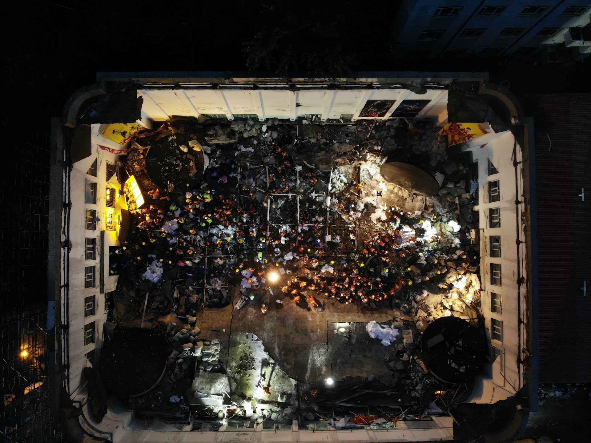 7月24日,齊齊哈爾市第34中學體育館屋頂坍塌事故搜救現場。(圖/新華社)