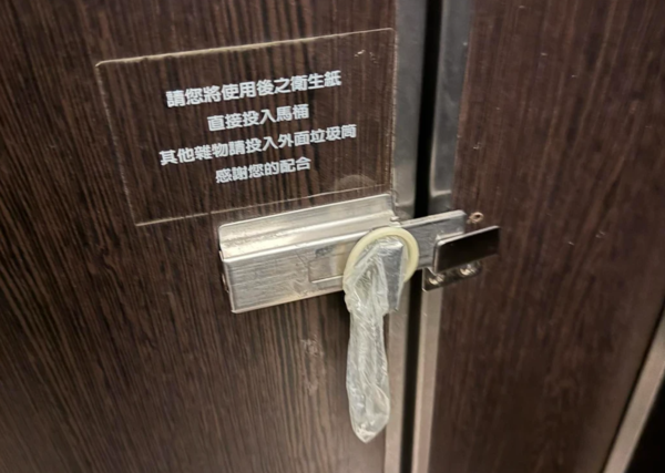 事件經由當事人在臉書社團「靠北天母幫」分享後引起關注。這位男網友表示,當時因為肚子不適,急忙衝進廁所隔間並立即上鎖,卻感覺門鎖觸感異常。定睛一看才發現,門鎖上竟掛著一個疑似用過的保險套,讓他當場嚇傻。